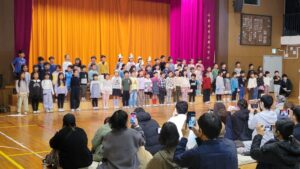 2クラスが学級閉鎖の中でした。お休みで参加できなかったお友達の分をカバーし合いながら保護者鑑賞日の発表をやり遂げました。学級閉鎖をしたクラスがあった学年は、後日、発表の機会を設定する予定です。ご来校いただいた来賓の皆様ありがとうございました。また、PTAみなみの会には、受付や誘導など多くの保護者ボランティアの方々にご協力いただきありがとうございました。