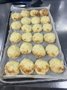 今日はセレクト給食の日です。いももちをチーズか甘辛で選んでもらいました。