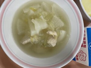 今日の給食はこの時期にしか出来ない大蔵大根を使ったサムゲタンです。