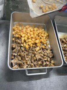 今日は、2種類の肉を使い、パプリカやスパイス、レモンなどで風味をつけてオーブンで焼き上げました。