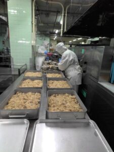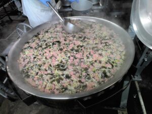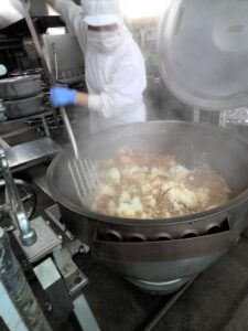 れんこんや、ひき肉、干瓢などの具材と調味料を混ぜていきます。