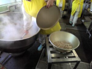 人参🥕やごぼう、こんにゃくなど別々に茹でています。中には下味を入れて入れたりするので、とっても手をかけて作っているこだわりの料理です。