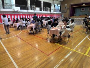 今日は6年3組と4組の皆さんのお祝い給食です。